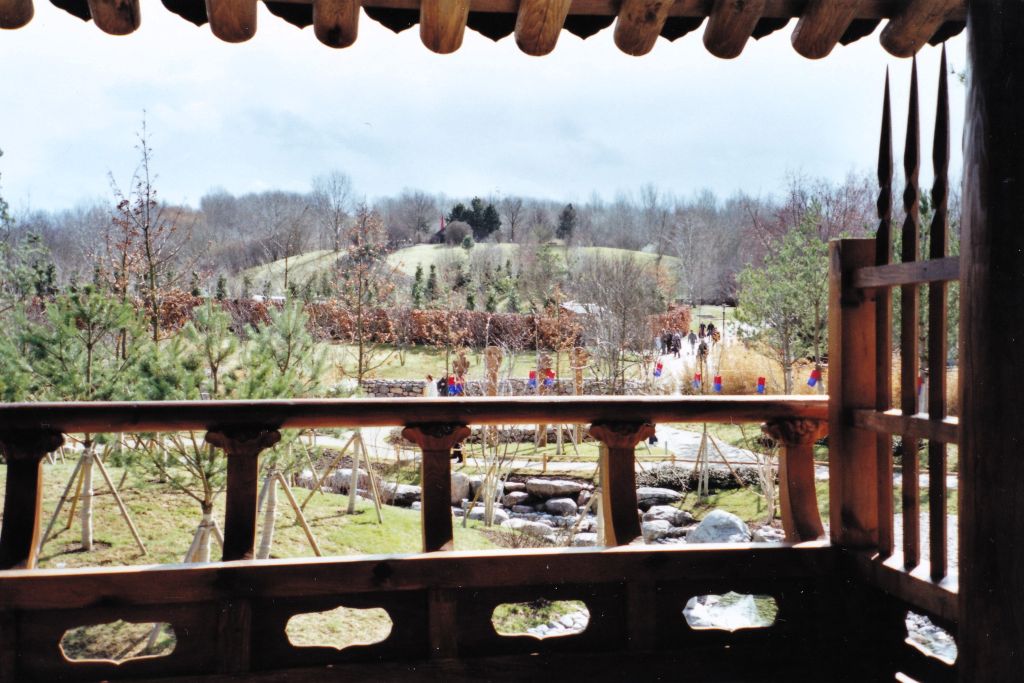 Es wurde ein kleiner Berg aufgeschüttet und eine Landschaft aus Felsen und einem Flusslauf modelliert. Auf die bergige Anhöhe mit dem Kye Zeong (Pavillon am Wasser) gelangt man über mehrere Höfe, Ma-Dang genannt. Der Pavillon folgt einem historischen Vorbild, dem koreanischen „Volkshaus Hanok“. Im Jahre 1516 wurde ein solches Haus für den berühmten Gelehrten Lee Eon Jeok gebaut. Er hatte sich aus dem politischen Leben zurückgezogen, um sich den Lehren des Konfuzius zu widmen. Von der Terrasse auf der Wasserseite des Hauses hat man eine wunderbare Sicht auf die gestaltete Flusslandschaft.