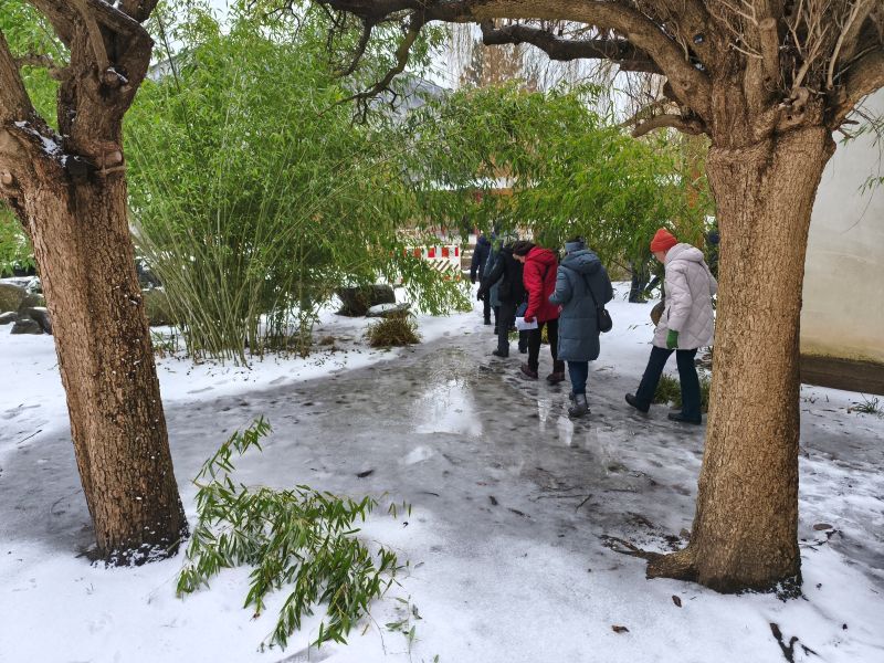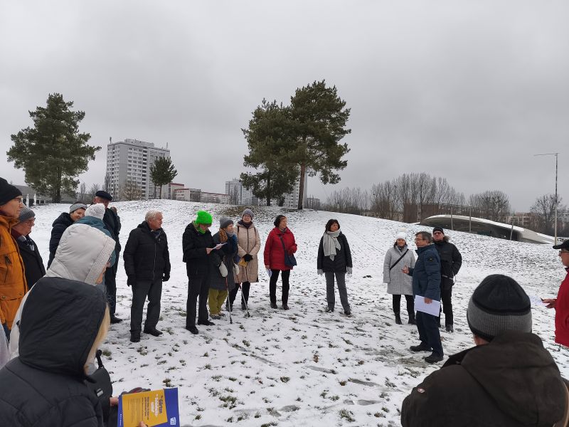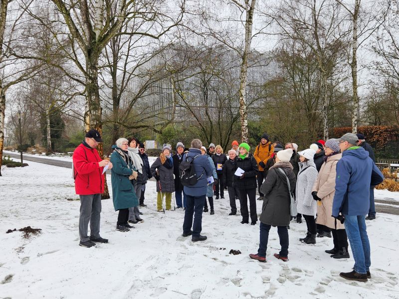 Unser Winterspaziergang als Jahresauftakt hat sich im Laufe der Zeit zum Publikumsrenner gemausert. Da der 1. Februar innerhalb kürzester Frist total überbucht war, gab es am 8. Februar eine Wiederholungsveranstaltung, diesmal mit Pritzi als kundigem Anführer, launigem Erzähler und Bescheidwisser. Und natürlich – nach fast zwei Stunden in der Kälte – mit den nun schon (Gärten der) Welt-berühmten multikulturellen Heißgetränken, kredenzt von Martina.