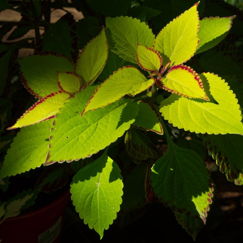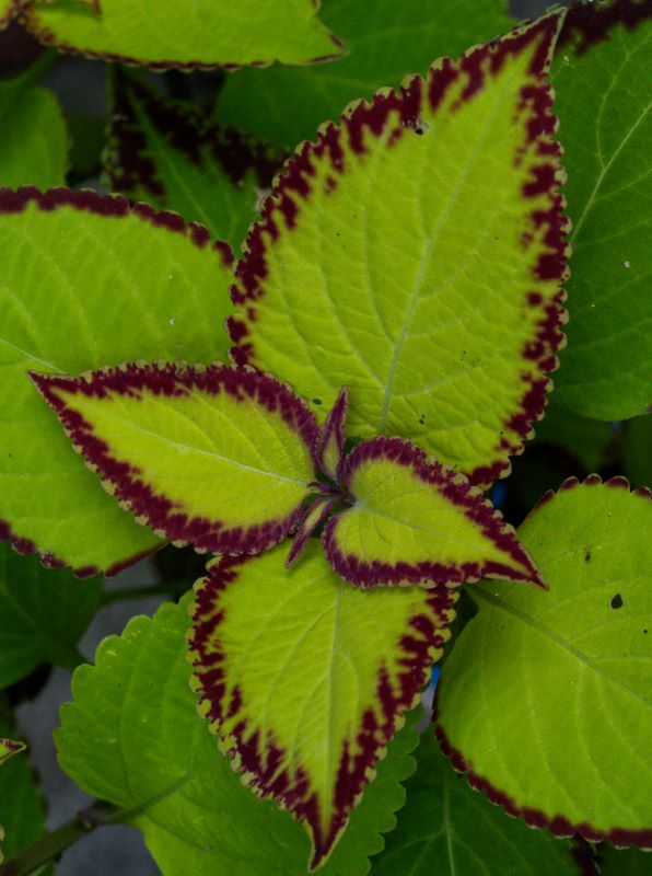 Die Buntnessel, deren aktueller wissenschaftlicher Name „Solenostemon scutellarioides(L.) Cood“ lautet, gehört in die Familie der Lippenblütler (Lamiaceae L.). Carl von Linné (1707 – 1783) ordnete diese Nessel in die Gattung Basilikum ein und gab der Art den Namen Ocimum scutellarioides (L.). Im Laufe der Zeit führten immer tiefer gehende wissenschaftliche Untersuchungen auch zur Zuordnung zu den Gattungen Plectrantus und Coleus – daher gibt es für die Buntnessel verschiedene botanische Namen, die man als Synonyme bezeichnet (für den Autor wird sie aus Bequemlicheit wohl immer „Coleus“ heißen). Der Gattungsname „Solenostemon“ nimmt Bezug auf Blüteneigenschften : „solenos“ bedeutet griechisch „Röhre“ und „stemon“ „Staubblatt, Staubgefäß, Stamen“ und „scutellarioides“ bedeutet, dass die Art den Helmkräutern (Scutellaria) ähnlich ist.