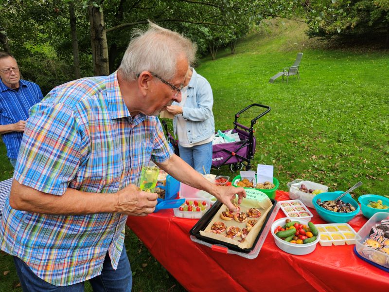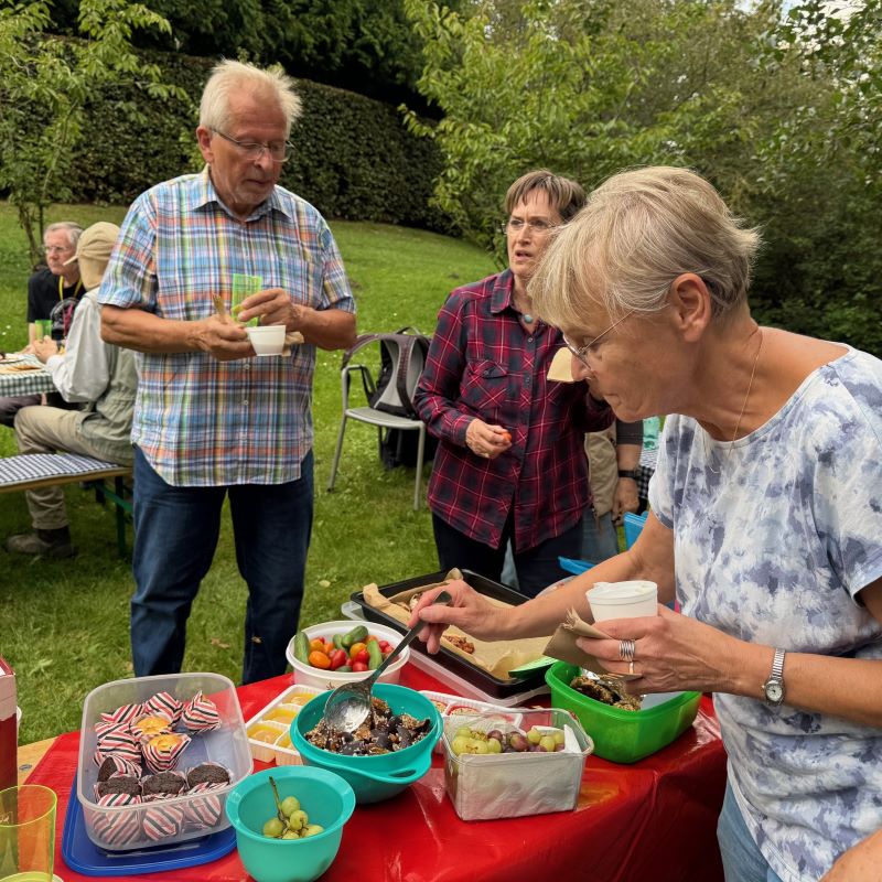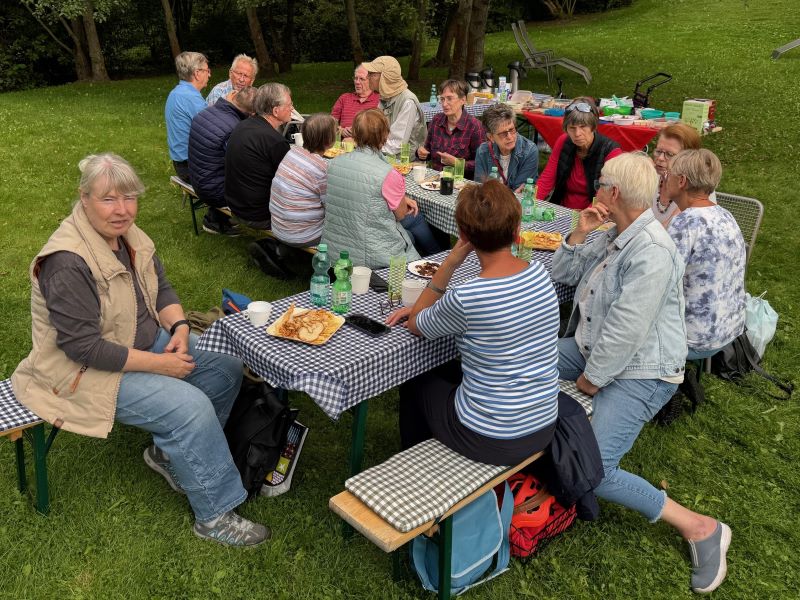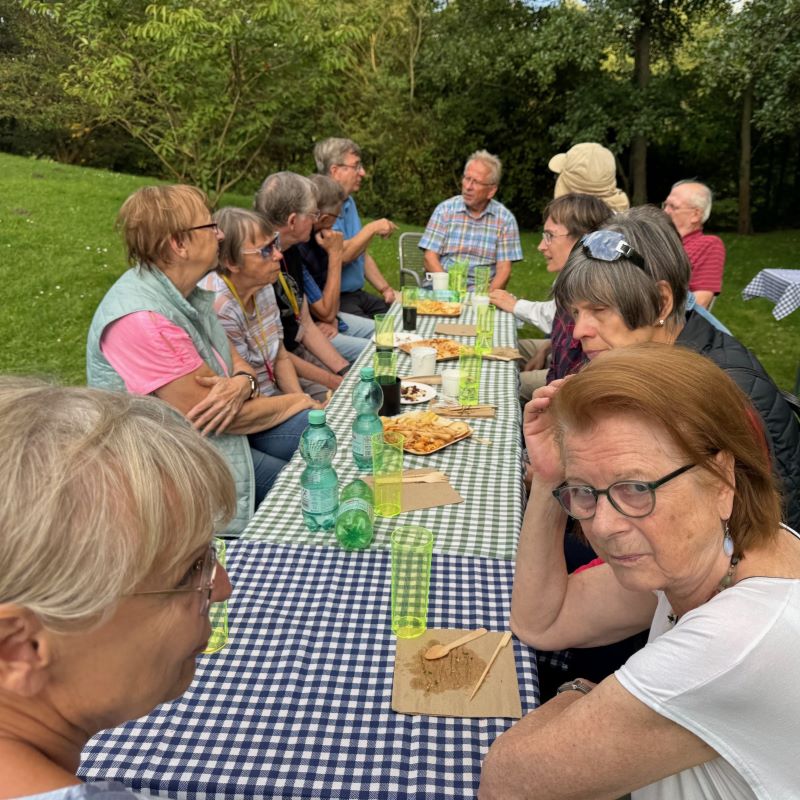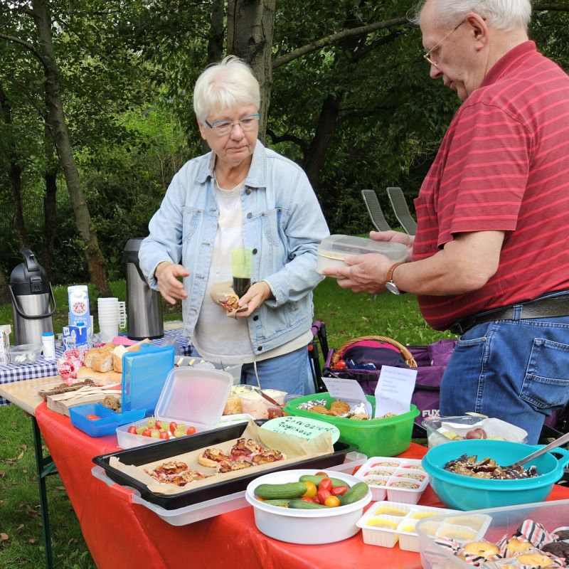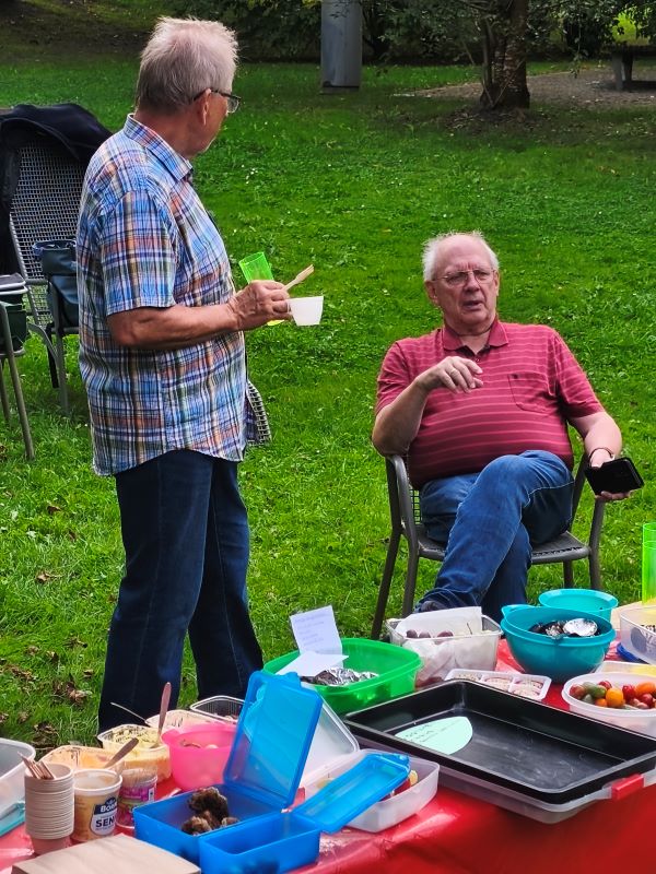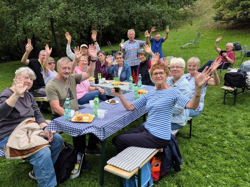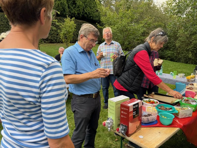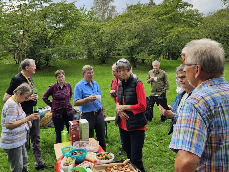 Gute Traditionen wollen gepflegt werden. Und da unsere jährlichen Picknicks immer auf der Wiese neben dem Japanischen Garten unter den Kirschbäumen stattfanden, konnten uns auch diesmal die ungünstigen Wetterprognosen für den 11. September nicht zu einer Verlegung unter ein schützendes Dach veranlassen. Und das war auch gut so, denn bis kurz nach 18 Uhr hielt das Wetter und wir konnten ausgiebig quatschen und die mitgebrachten Köstlichkeiten genießen. Dann allerdings mussten wir sehr schnell unsere Zelte abbrechen resp. Tische und Bänke abräumen, übrig gebliebenes Essen und Trinken verstauen, Regenschirme aufspannen und die Flucht ergreifen. Auch wenn wir am Ende doch noch ganz schön nass wurden, es war wieder eine gelungene Veranstaltung, dem Miteinander im Verein dienlich!