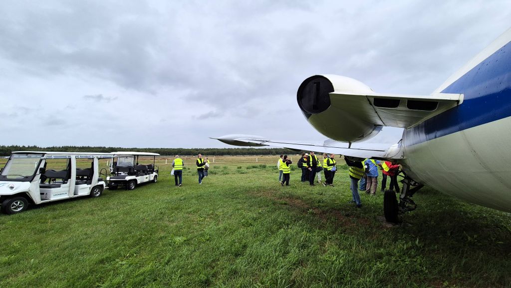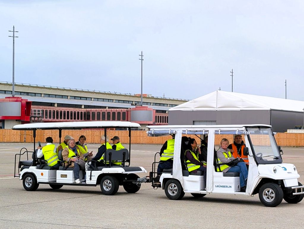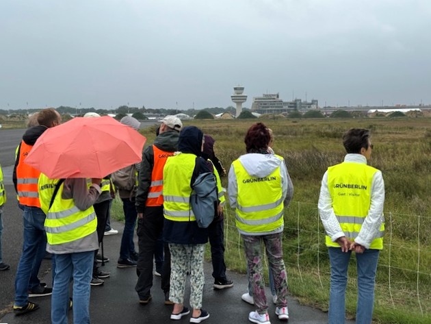 Die Grün Berlin GmbH hat 2021 die Aufgabe übernommen, das ehemalige Flug- und Rollfeld (Tegeler Stadtheide) schrittweise zu qualifizieren. Parkleiter Robert Hain und Projektleiter André Ruppert nahmen uns auf 2 Elektro-Fahrzeugen mit auf eine Erkundungsfahrt in die Zukunft. Sie vermittelten uns viel Wissenswertes in Bezug auf die schützenswerte Flora und Fauna und die Transformation des Areals.