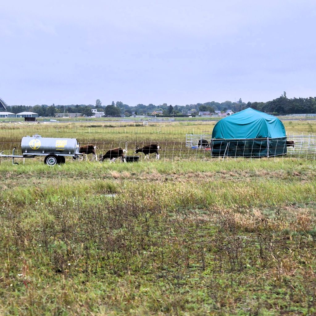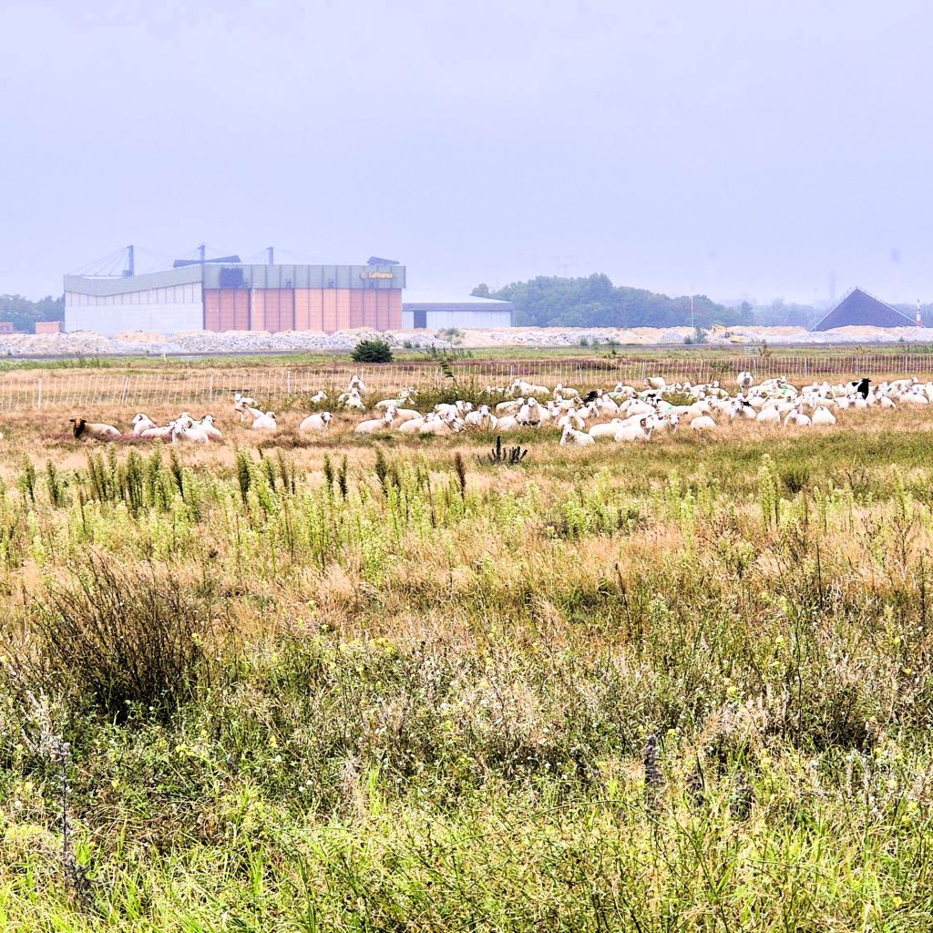 Auf den Weideflächen sind über 300 Schafe im Einsatz, um für die breite Tierwelt ungestörte Rückzugsorte zu schaffen. Da die Schafe aber nicht alles fressen, was wächst, findet man auch Ziegen, die beispielsweise die schnell wachsenden Pappeln „kurz“ halten. Auch das bis vor kurzem noch in den Gärten der Welt faul rumstehende Rote Höhenvieh und die Dülmener Pferde sind hier im „Arbeitseinsatz“. Aber auf dem schier endlosen Gelände reichte die Zeit unseres Besuches nicht aus, sie zu finden, um ihnen einen Gruß aus den Gärten der Welt zu überbringen.