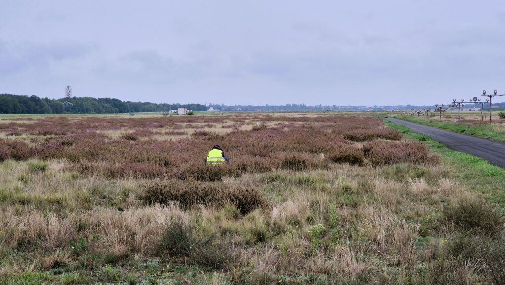 Wir konnten schon viel von dem sehen, was im Entwicklungs- und Pflegekonzept geplant ist. Sei es der Erhalt der sich in den letzten Jahrzehnten entwickelten Biotope oder die Etablierung eines dynamischen Mosaiks aus wertvollen Offenbiotopen unterschiedlichster Art. So werden Teile der Taxiways (das sind die Rollbahnen) aufgebrochen, um dort steingartenähnliche „Beete“ anzulegen. Große Quader wurden aus dem Beton herausgelöst, um sie für die Gestaltung von Wegen oder als Sitzmöglichkeiten zu nutzen.