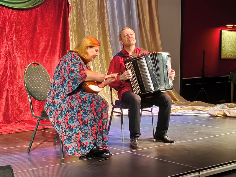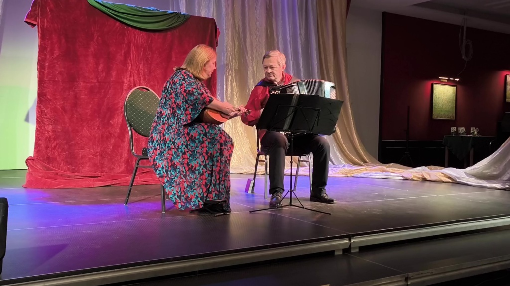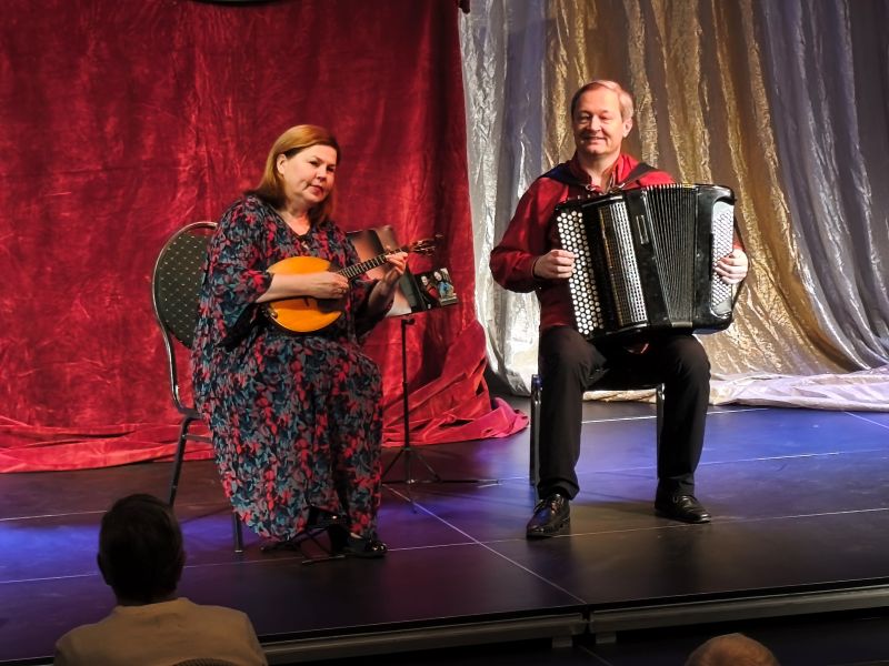 Wie es bei unseren Weihnachtsfeiern schon Tradition ist, kam natürlich die Kultur nicht zu kurz. Nachdem wir im vorigen Jahr auf die schöpferischen Kräfte unserer Mitglieder gebaut hatten (ein durchaus gelungener Ansatz), wollten wir diesmal wieder Profis ranlassen. Und was für welche! Das Duo Faller (Dmitry Und Oxana = DUO) begeisterte uns mit weihnachtlich-winterlichen Melodien, virtuos gespielt auf der Domra und dem Bajan. Unglaublich, welche Vielfalt an Klängen unter Einsatz nicht nur der Hände, sondern sogar mit Hilfe des Kinns aus dem Knopfakkordeon gezaubert werden können!